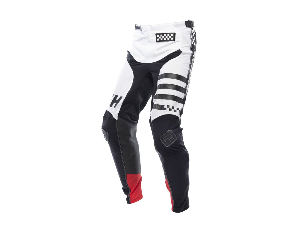 Řada Elrod je to nejlepší, co tato značka nabízí z mx výbavy. Slim-fit stretch střih se přizpůsobí anatomii těla a neomezuje pohyb jezdce. Kalhoty jsou konstuovány ze stretch marteriálu, rozpínatelného do 4 stran, v místech největší zátěže otěrem jsou 450D a 600D odolné panely z polyesteru, z vnitřní strany kalhot jsou umístěny panely z pravé kůže pro zvýšení odolnosti proti otěru a teplu, na stehnech nohou je umístěna odolná lehká grafika vytištěná pomocí TPR technologie, šířku pasu lze donastavit plastovým páskem a dvěma suchými zipy na bocích, zip kalhot je překrytý látkovým panelem, pro dodatečnou ventilaci má přední horní panel kalhot děrování a v oblasti lýtek jsou prodyšné stretch síťované panely, nad pánví je umístěn stretch díl látky, překrytý shora pohledovým odolným panelem. V oblasti stehen jsou síťované panely pro extra prodyšnost.