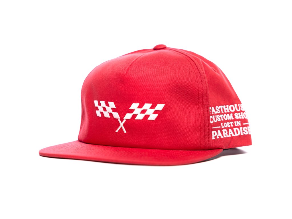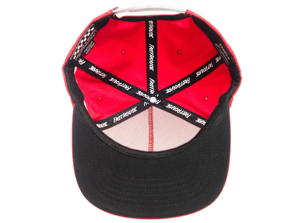 Fasthouse Getaway Hat má universální velikost One Size, rovný pevný kšilt a vyšitou grafiku na předním a bočním panelu. Zezadu čepice je snapback plastový pásek s nastavitelnou délkou, měníte tak obvod čepice. U pásku naleznete malé nášivkové logo Fast.