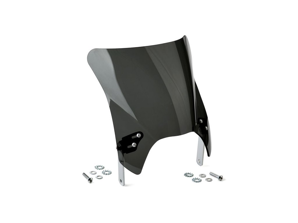 Headlamp mounted; installs to most naked bikes with open forks & exposed headlamps; chrome hardware; fully adjustable fork mounted; 95% dark gray; V-profile screen; FMR hard coated Lexan polycarbonate; dimensions: 9.25" high (23.5cm) x 11.75" wide (29.8cm) Fits: > Honda: 88-97 NT650/NTV650. Kawasaki: 18-22 Z900RS; 11-13 W800; 99-08 W650. Suzuki: 97-04 GSF1200N Bandit; 99-01 GSX1200; 85-86 GS1150E; 91-93 GSX1100G; 1980 GS1100L; 82-83 GS1100G/GL; 82-83 GS1100E; 03-04 SV1000; 78-81 GS1000; 78-83 GS850G ALL MODELS; 90-97 VX800; 98-99 GSX750; 00-02 GSX750; 82-83 GT750T; 80-81 GS750L; 1982 GS750E; 77-79 GS750; 1985 GS700E; 03-06 SV650; 99-02 SV650; 81-83 GS650 All MODELS; 1983 GR650 X Tempter; 97-03 GSF600N Bandit; 91-93 GSF600; 72-77 GT550 Indy; 85-86 GS550L; 77-82 GS550 ALL MODELS; 90-02 GS500E; 75-77 GT500; 80-88 GS450L; 80-83 GS450E; 82-85 GS450GA Automatic; 1979 GS425 ALL MODELS; 91-97 GSF400 Bandit; 77-78 GS400 ALL MODELS. Triumph: 04-14 Thruxton; 01-15 Bonneville/T100; 16-20 Bonneville/T120; 07-15 Scrambler; All T140/TSS/TR6 Bonneville 750; 95-03 Thunderbird. Yamaha: 00-13 XJR1300; 95-99 XJR1200.