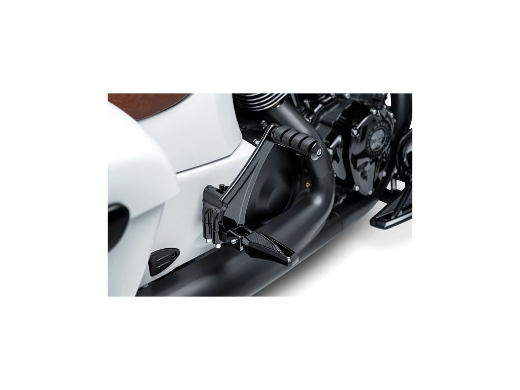 A replacement for the factory peg mount to allow installation of adjustable passenger pegs on Indian Chief (Available as 541638 chrome or 558869 black pegs). These aluminum brackets relocates the passenger peg location to a more comfortable and ergonomic position. Note: Can re-use stock passenger pegs or any Kuryakyn pegs when using 560725 chrome or 860726 black splined adapters. Note: Compatible with Springfield, Chieftain Elite & Roadmaster to convert from Passenger Floorboards to Pegs. Fits: > Indian: 14-20 models (excl. Scout & FTR)